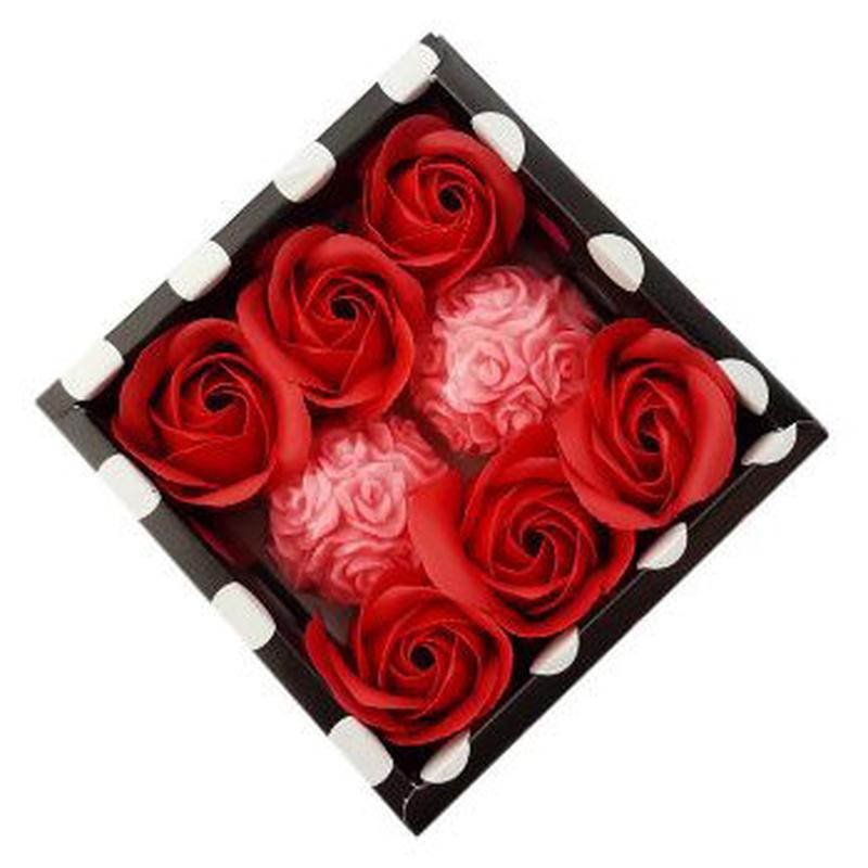 Подарочное мыло-роза. набор 6 + 2. квадратная упаковка. цвет: розовый vw-20