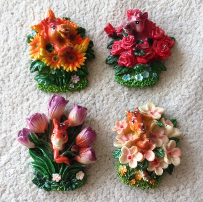 Конь магнит с цветами символ 2026 сувенир подарок новогодний год коня магниты 7х6см