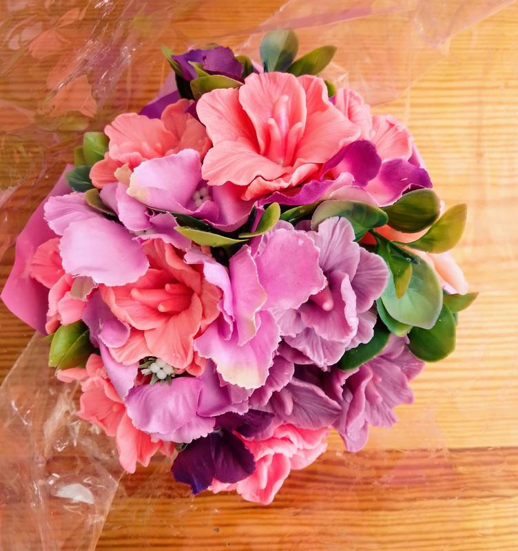 Мыльный букет цветы мыло ручной работы розовый фиолетовый большой