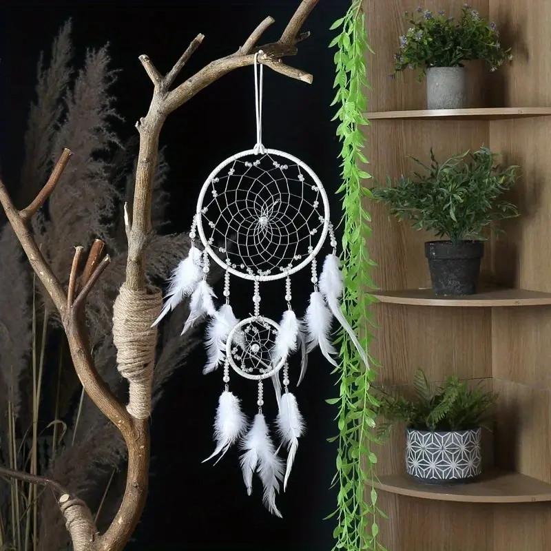 Ловец снов белого цвета с бусинами длиной 45 см -- это удивительное и изысканное творение, созданное для захвата и привлечения волшебных сновидений. Его изящная форма и сияющая поверхность из белого материала делают его привлекательным объектом искусства. Центральная часть ловца снов образует круглую рамку диаметром 45 см, созданную из прочного, но изящного белого материала. На этой рамке расположены нежные и тонкие нити с белыми бусинами, которые легко колышутся при лёгком ветерке, создавая гипнотическую атмосферу. В центре ловца снов находится маленькая, но красиво украшенная сеть, выполненная из тонких белых нитей. В этой сети замысловато переплетаются бусины разных размеров и форм, формируя завораживающий мозаичный узор. Ниже сети находятся подвески из белых бусин разных оттенков, которые аккуратно повторяют мозаичный узор. Они свободно свисают на тонких нитях, что позволяет им легко двигаться и отражать свет, создавая игру теней и бликов. Этот ловец снов белого цвета с бусинами длиной 45 см -- не только эстетичное украшение, но и символ защиты и благополучия. Он призван привлекать положительную энергию и фильтровать негатив, превращая его в спокойные сны. Вися на стене или в окне, он будет ловить самые прекрасные сновидения, принося радость и волшебство в ваш дом.