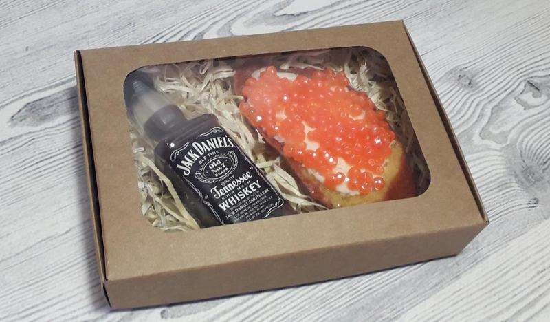 Подарунковий набір сувенірного мила віскі і бутерброд з червоною ікрою мило ручної роботи