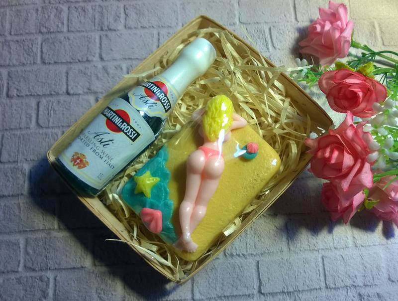 Сувенірне мило ручної роботи Мартіні і дівчина на пляжі Мило виготовлено з професійної основи з додаванням олії солодкого мигдалю і авокадо. Аромати (цитрусові, фруктові, ягідні, шоколадні, свіжі, парфумовані). Термін виготовлення 2-3 дні перед святами термін збільшується до 7 днів