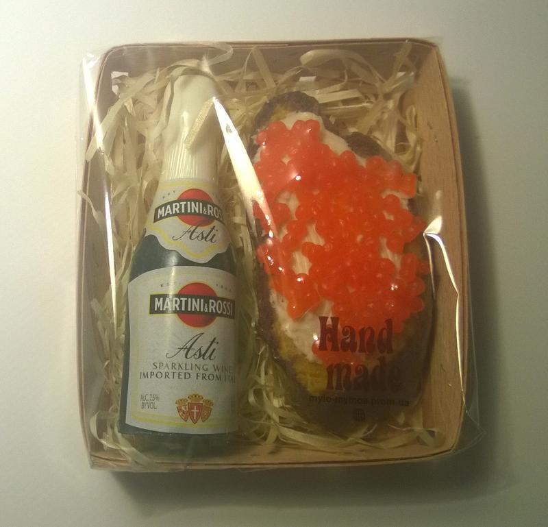 Подарочный набор сувенирного мыла мартини и бутерброд с красной икрой мыло ручной работы