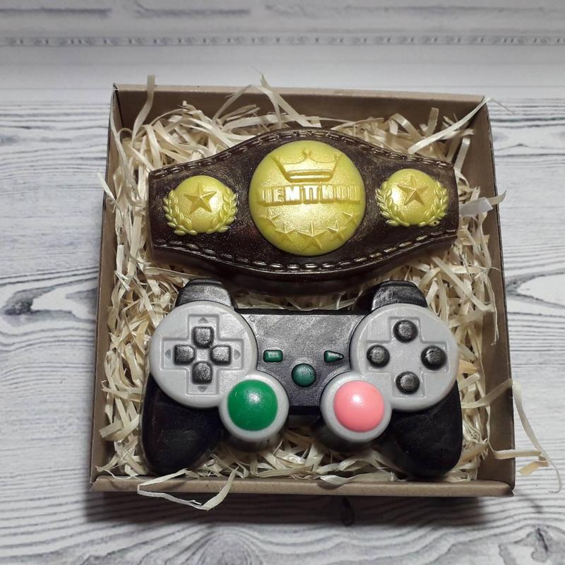 Подарочный набор сувенирного мыла геймпад и пояс чемпиона мыло ручной работы