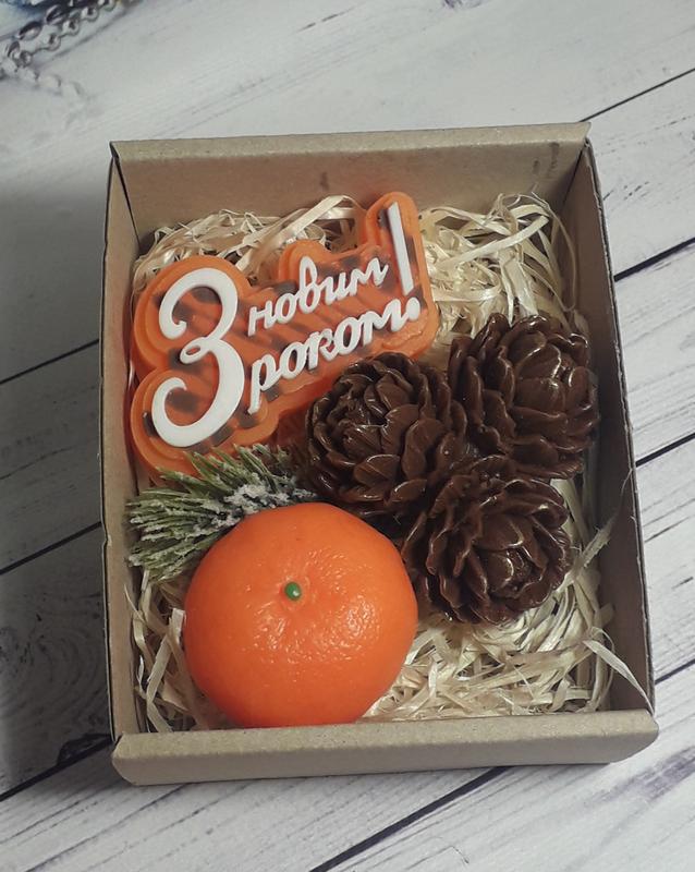 Подарочный набор сувенирного мыла з новим роком, мандаринка и шишки мыло ручной работы