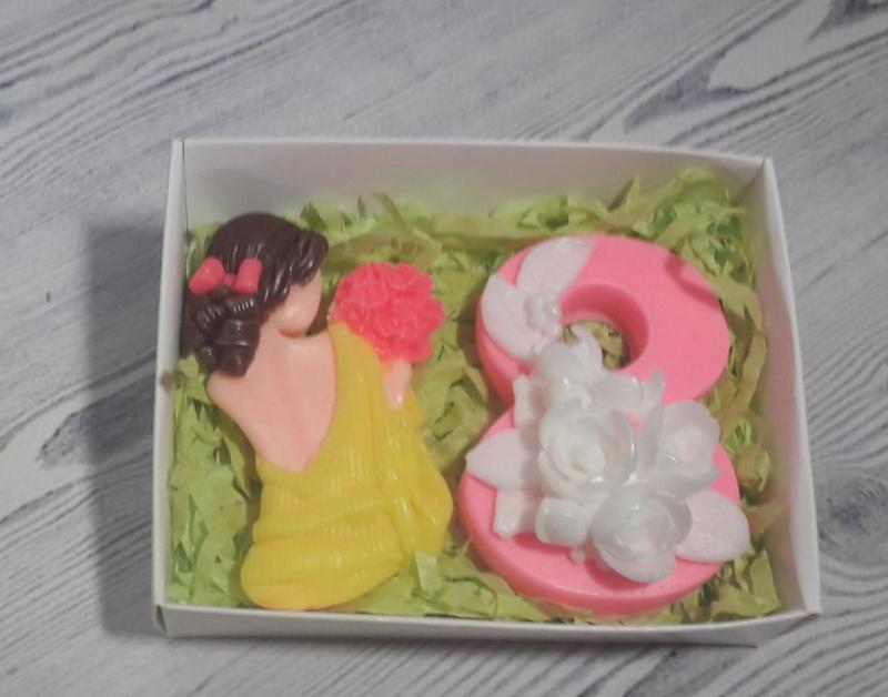 Подарочный набор сувенирного мыла девушка и нежная восьмерочка (коробочка с прозрачным вер...