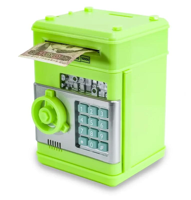 Электронная копилка-сейф с кодовым замком Деньги любят счет и тишину. А что лучше всего будет хранить тайну ваших сбережений? Конечно же сейф! Эта электронная копилка-сейф станет прекрасным подарком любому человеку, который хочет немного поднакопить и оставить это в секрете. Данная копилка-сейф оснащена специальным механизмом, который срабатывает при поднесении купюры к купюроприемнику и затягивает ее внутрь, помещая в основное отделение копилки. В верхней части есть прорезь для монет, которые собираются в специальный лоток и не смешиваются с купюрами. Как и положено настоящему сейфу, эта копилка имеет кодовый замок. Введите код, поверните ручку и она откроется. Если же вы вдруг забыли закрыть дверь, копилка напомнит звуковым оповещением, что дверца открыта. Электронная копилка-сейф, это: - Оригинальная копилка с кодовым замком - Прекрасный подарок - Надежный способ хранить и копить деньги - Характеристики: - Материал: пластик, металл - Питание: 3 батарейки АА (в комплект не входят) - Размер: 19*14*14 см. -