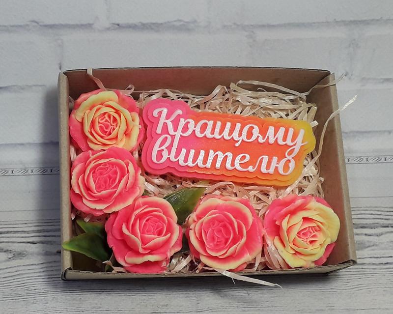 Подарочный набор сувенирного мыла кращому вчителю и розочки мыло ручной работы