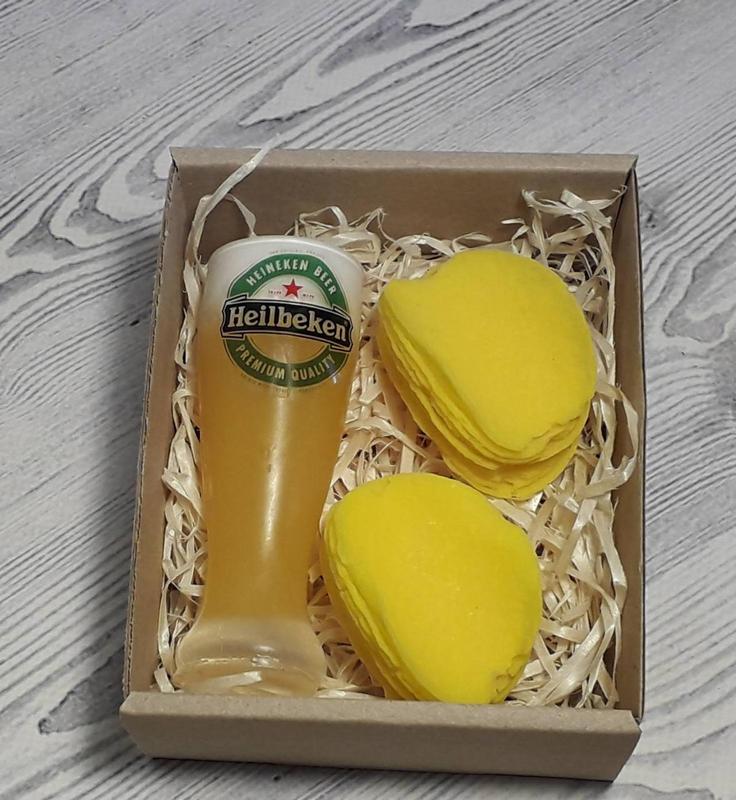 Подарунковий набір сувенірного мила склянка пива і чіпси (2шт) мило ручної роботи
