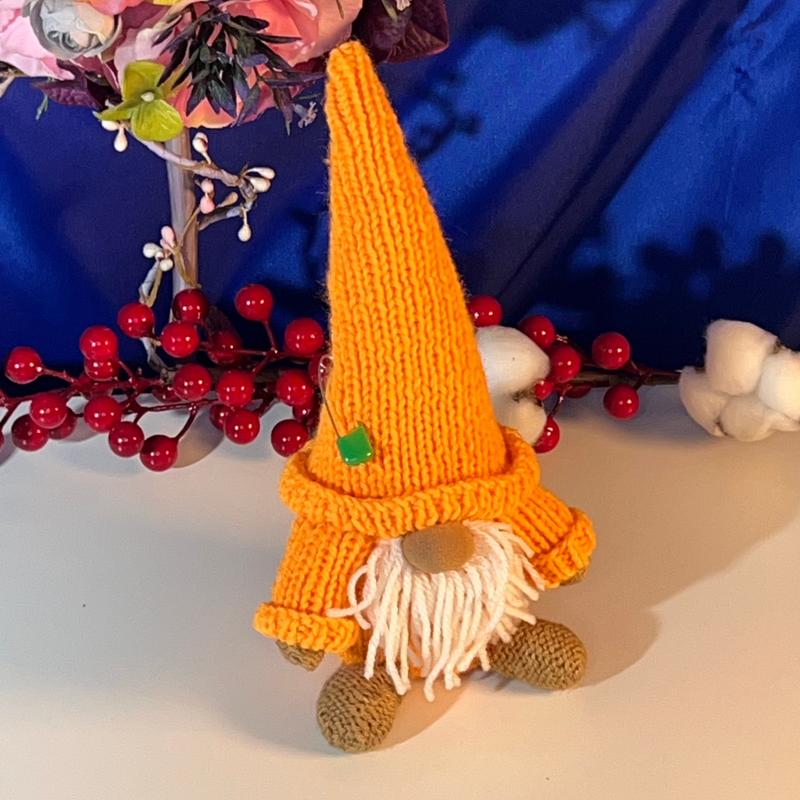 Вязанный гном ручной работы, оранжевый гном вязанный 25 см, ms1