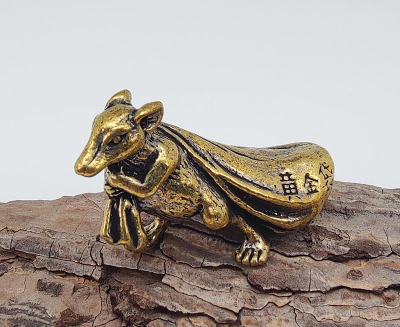 Фигурка из латуни "Мышка с мешком денег". Хорошая детализация, размеры: высота 3,50 см., ширина 2,50 см., глубина 5,50 см., вес 67.00 грм.