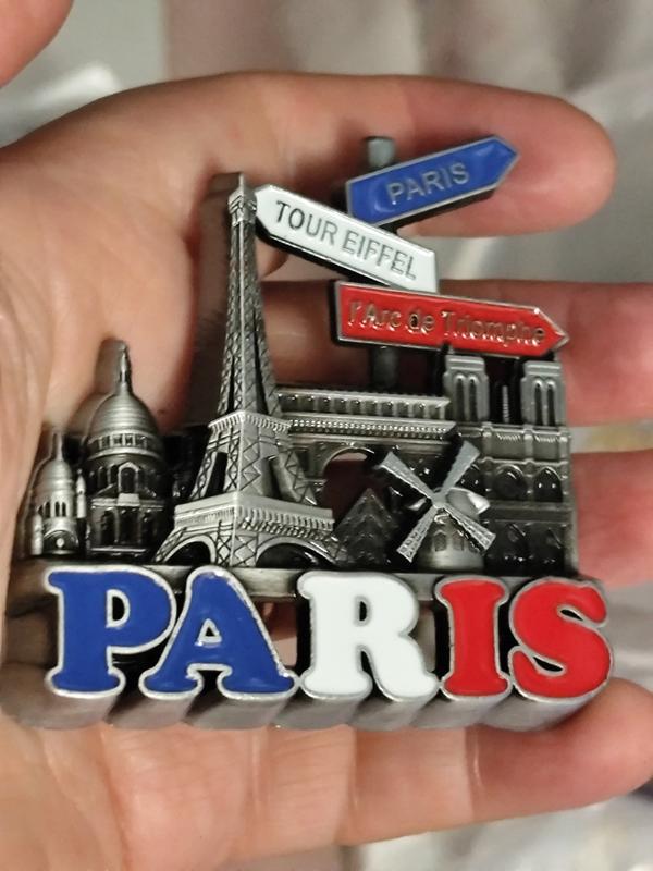 металлический. и эмаль. рассписан вручную. куплен во ФРАНЦИИ.Эйфелева башня