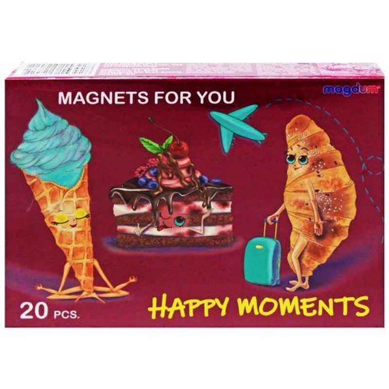 Яркий интересный набор магнитов с оригинальными картинками разных блюд. Комплект состоит из 20 элементов. Каждый магнит имеет 3 слоя: магнитная часть, прочный картон, ламинированный слой. Диаметр одного магнита 5 см. Для детей старше 3-х лет._ Бренд: Magdum Возраст: 3 года Упаковка: Коробка Цвет: Разноцвет Вес в упаковке: 160 г Габариты в упаковке: 12 x 17 x 3.5 см Cтрана производитель: Украина Материал: Комбинированный Комплектация: Набор магнитов 20 шт