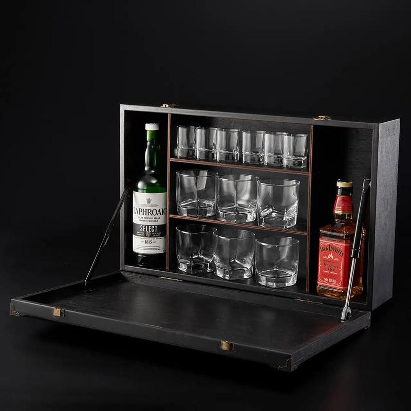 Настенный мини - бар с набором стаканов на 6 персон в подарочном кейсе