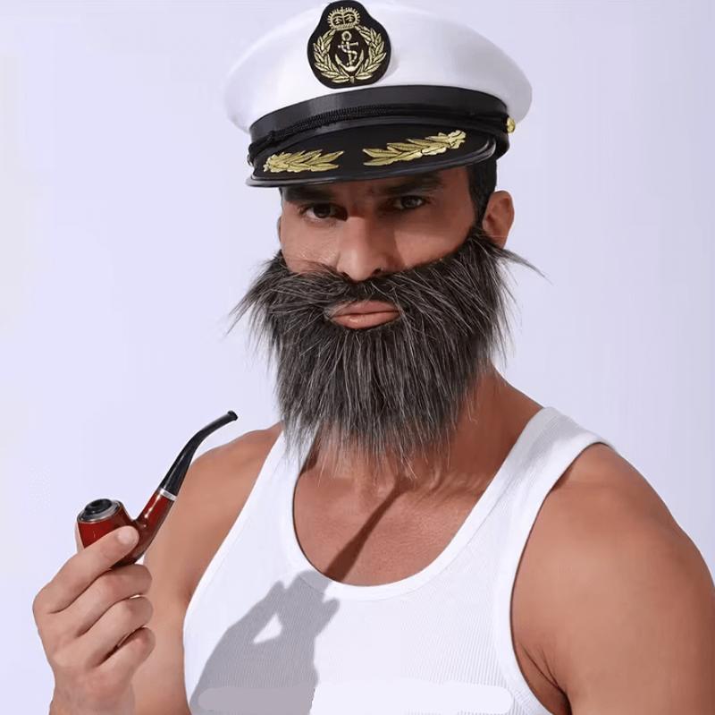 ## Морской волк. Бывалый капитан корабля. Набор аксессуаров 3 предм. 081352/ 081610 В этот шикарный комплект входят 3 отличных характерных аксессуара, которые создадут вам безпроигрышный и легкоузнаваемый образ бывалого морского волка, капитана, отважного и бесстрашного матроса, моряка. Это: 1. Шикарная, великолепная фуражка корабельного капитана, которая будет аксессуаром № 1 на самую изысканную морскую вечеринку, сделав её обладателя, без сомнения, Главным участникам мероприятия! Унисекс: подходит и мужчинам и женщинам. Размер до 58+. Видно на фото, что карнавальная фуражка Морского Капитана выполнена идеально, выглядит очень реалистично, как говорится, как настоящая. Весь декор исполнен качественной и аккуратно сделанной машинной вышивкой: нить вышивки – жёлто-золотистая, блестящая, с эффектом люрекса. Декор богатый, вышивка имеет реальный выпуклый рельеф. 2. Чёрная-серая с сединой борода с усасми, которая крепиться на классическую резинку и может иметь многоразовое использование. 3. Реалистичная капитанская трубка имитирующего эффект красного дерева и имеющая в своей конструкции металлические элементы. Кстати, трубку можно успешно использовать, она имеет не только карнавальное назначение, но и может функционировать, усиливая эффект реалистичности и правдоподобности Вам остаётся только добавить обычную майку, как на фото наших или футболку белого цвета – с коротким, а лучше – с длинным рукавом – и… вы получите витоге полноценный морской костюм со всеми входящими в его состав, аксессуарами морского волка Будьте готовы к очереди ваших друзей, которые будут просить у вас этот аксессуар, чтобы сделать селфи и незабываемые фотосессии.