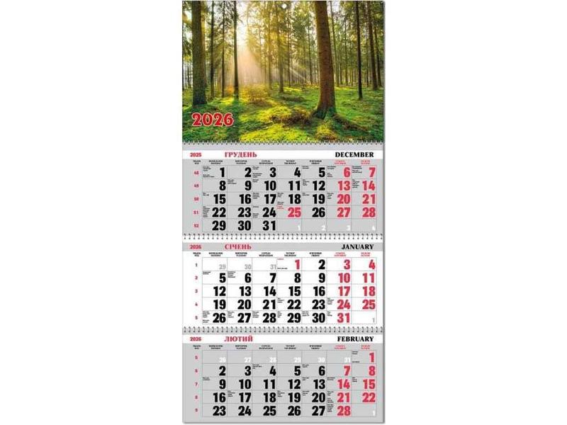 Календар кварт. на 3пр природа 2026 арт.bg3 26-14 тм україна
