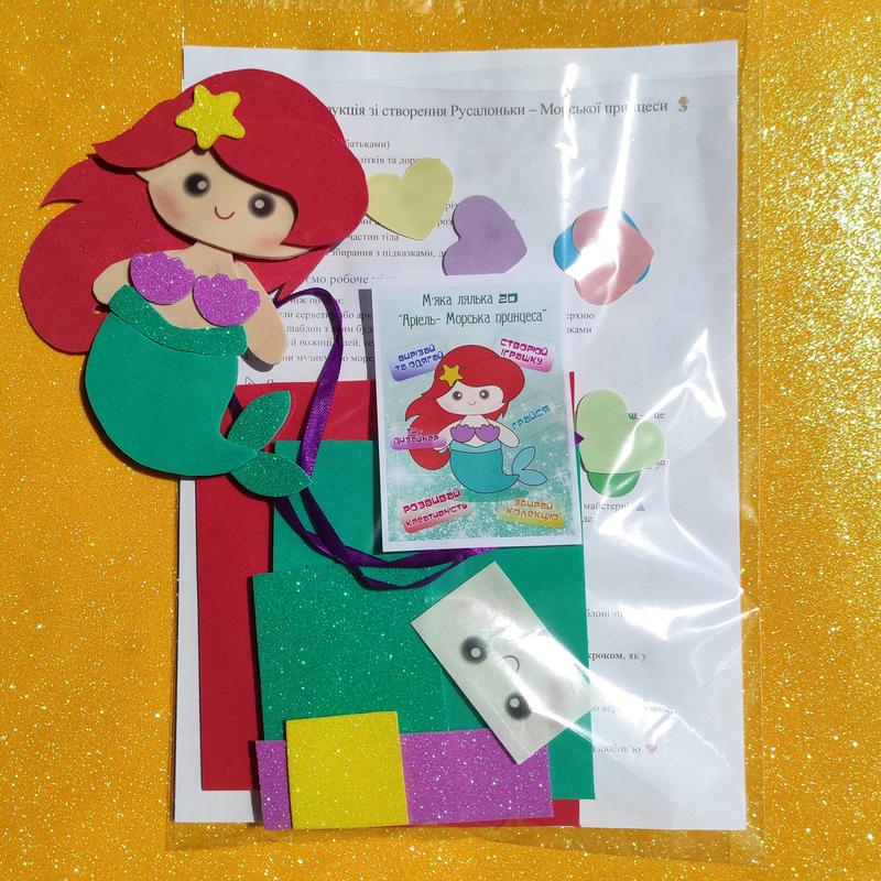 Набор для детского творчества "Сделай сам мягкую куклу 2D -- Морская принцесса - "Русалочка Ариэль"" Это не просто вырезалка или аппликация -- это мягкая игрушка, которую ребёнок создаёт своими руками, шаг за шагом. «Сделай куклу -- одень, приклей, играй!» Идеальная идея для детского творчества, которая развивает креативность, мелкую моторику и дарит радость. 🎁 Идеальный подарок для школьника или дошкольника: ✔️ на 1 сентября ✔️ на день рождения ✔️ на уроки труда, изобразительного искусства, поделки ✔️ для занятий в кружках, студиях, на мастер-классах ✔️ для совместного досуга с родителями 👶 Подходит детям от 4 лет (под присмотром взрослых) В набор входит: 🔹 цветные кусочки для вырезания по шаблону 🔹 картонный шаблон-разметка (вырезалка) 🔹 пошаговая инструкция Набор удобно использовать дома, в школе, детском саду или на творческом уроке. ✅ Собери мягкую аппликацию в виде куклы ✅ Одень принцессу -- элементы легко приклеиваются ✅ Играй или укрась комнату -- кукла станет отличным декором