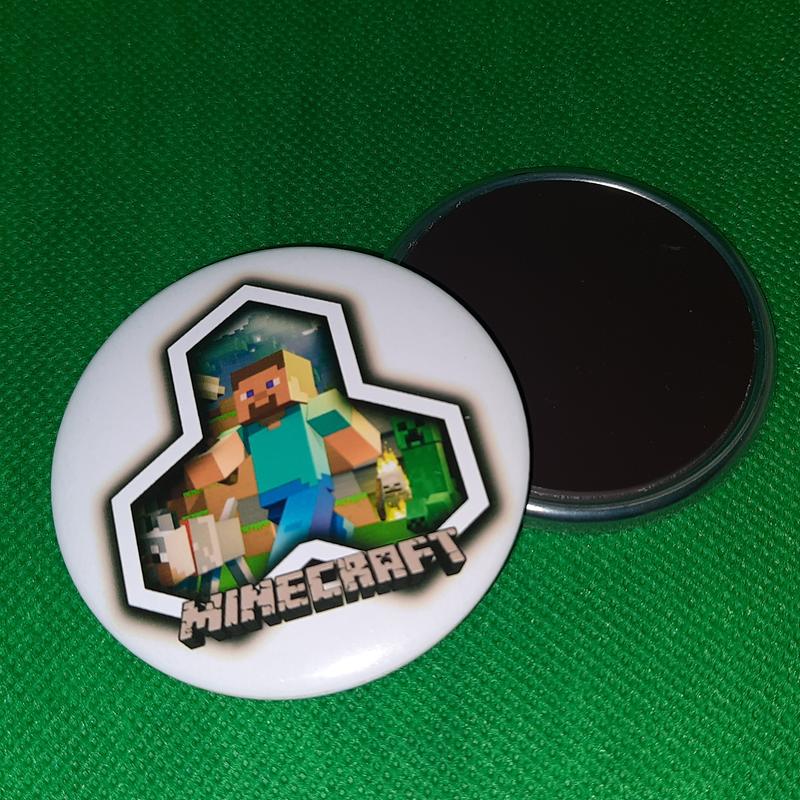 Круглый магнит minecraft майнкрафт Круглый магнит из игры minecraft майнкрафт Можно прицепить на холодильник или на любую металлическую поверхность и так далее. Диаметр круглого магнита 58мм Для фанатов игры minecraft Minecraft даёт в распоряжение игрока процедурно генерируемый и изменяемый трёхмерный мир, полностью состоящий из кубов — его можно свободно перестраивать, создавая из этих кубов сложные сооружения — эта особенность делает игру схожей с конструктором LEGO. Minecraft не ставит перед игроком каких-либо конкретных целей, но предлагает ему свободу действий: например, игрок может исследовать мир, добывать полезные ископаемые, сражаться с противниками и многое другое. Игра включает в себя дополнительные режимы, например, «выживание», где игроку нужно самому добывать ресурсы, и «творчество», где у игрока эти ресурсы есть в неограниченном количеств]. Механика «редстоуна» (англ. Redstone) позволяет создавать в игре сложные логические схемы — тем самым игра может служить виртуальным конструктором для программистов и инженеров. Цена за 1шт / значок / пин / pin / значек / anime / manga / аниме / манга / badge / магнит / открывашка