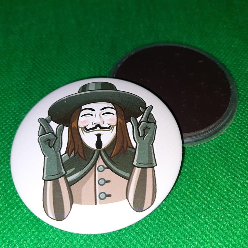 Круглый магнит заговорщик Гай Фокс Guy (Guido) Fawkes Anonymous Можно прицепить на холодильник или на любую металлическую поверхность и так далее. Диаметр круглого значка 58мм Для фанатов заговорщика Гай Фокс Guy (Guido) Fawkes Anonymous Гай Фокс, также Гви́до Фокс (англ. Guy (Guido) Fawkes, встречаются и другие написания имени и фамилии; род. 13 апреля 1570, Йорк, Королевство Англия — 31 января 1606, Вестминстер, Королевство Англия) — английский дворянин-католик, родился в Йорке, самый знаменитый участник Порохового заговора против английского и шотландского короля Якова I в 1605 году. В 2002 году в опросе Би-би-си «100 величайших британцев» Фокс занял тридцатое место. Цена за 1шт / значок / пин / pin / значек / anime / manga / аниме / манга / badge / cartoon / мультфильм / магнит / открывашка /