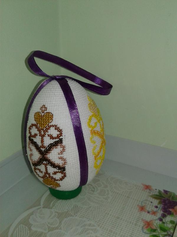 Яйцо пасхальное сувенирное вышитое крестиком вручную,нитки мулине,бекстич,лента атласная. Высота 10см.