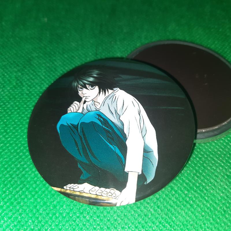 Круглый магнит Тетрадь Смерти Death Note Можно прицепить на холодильник или на любую металлическую поверхность и так далее. Диаметр круглого магнита 58мм Для фанатов аниме и манга Тетрадь Смерти Death Note Тетрадь смерти (デスノート Дэсу Но:то, Death Note) — манга за авторством Цугуми Обы, проиллюстрированная Такэси Обатой, выпускавшаяся в журнале Weekly Shonen Jump с 1 декабря 2003 года. Согласно опросу, проведённому в 2007 году министерством культуры Японии, занимает 10-е место среди лучшей манги всех времён. Цена за 1шт / значок / пин / pin / значек / anime / manga / аниме / манга / badge / cartoon / мультфильм / магнит / открывашка /