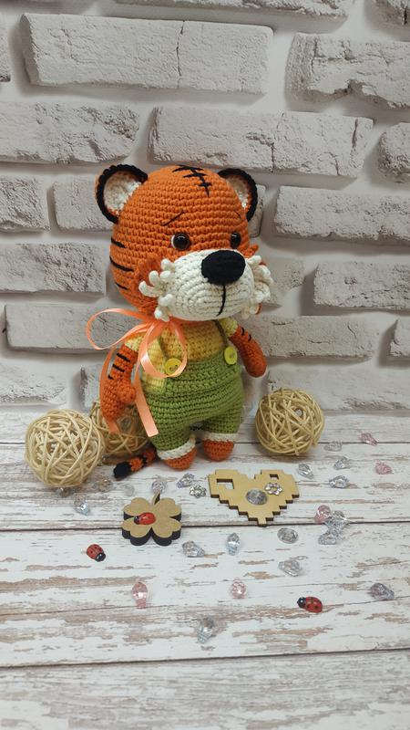 Тигр, символ года. Тигр связан крючком из хлопковой пряжи, глаза на безопасном креплении, наполнение холофайбер. Размер 20 см.