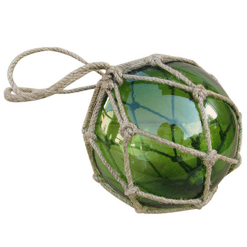 Морской сувенир стеклянный зеленый шар в сетке sea club, d-15 см.