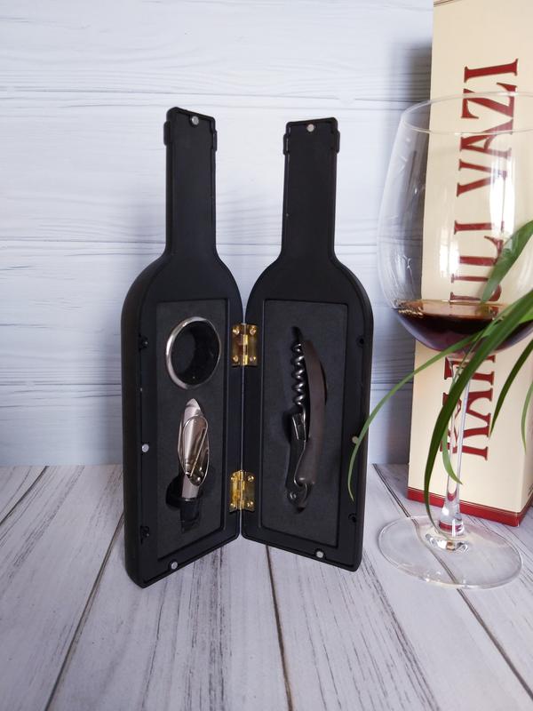 В наличии в 3-х цветах: темно-зеленый, бордо,черный. Винный набор сомелье - это стильный подарок,который подойдет как женщине,так и мужчине. Им вы подчеркнете как свой вкус,так и уважение к получателю дара,намекая тем самым, что знаете его или ее как ценителя вин. Подарочный винный набор красиво упакованный в специальном футляре в виде винной бутылки, все инструменты выдержаны в едином дизайне и выполненны из качественного метала. В наборе есть все необходимые вещи что бы открыть бутылку. Прежде всего это: -штопор профессионала " Швейцарский нож" который удалит пробку легко и быстро. Металлический штопор сомелье оснащен маленьким ножичком для удаления обертки пробки,а также имеется открывалка для бутылок. -Воронка для вина с пробкой,что бы сохранить букет напитка до следующего раза (если бутылка осталась не допитой). -Кольцо с салфеткой,которая одевается на бутылку,что бы капли вина не стекали с нее и не запачкали скатерть. Отправка Новой почтой или Укр почтой в любой город Украины. Или возможен самовывоз М Лукьяновка