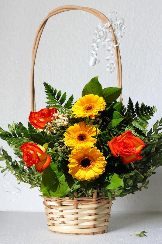 Плетеная корзинка для цветов и подарков с высокой ручкой декор из лозы - 46см