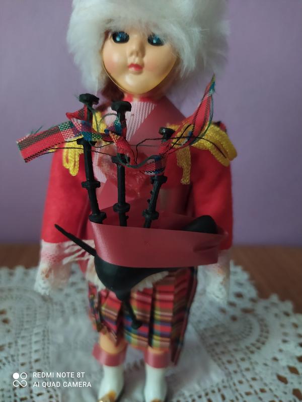 Кукла коллекционная , шотландец с волынкой 22 см высотой Голубые глаза, открываются- закрываются.