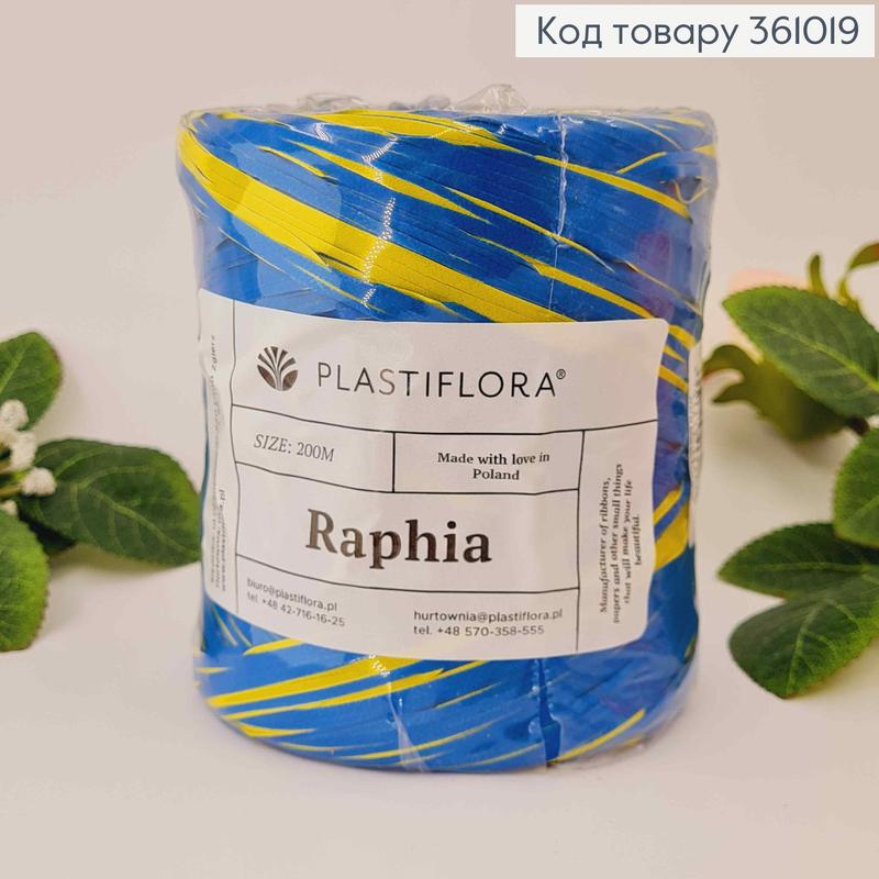 Лента для букетов/воздушных шаров рафия, мотанка рафия голубно-желтая 200м