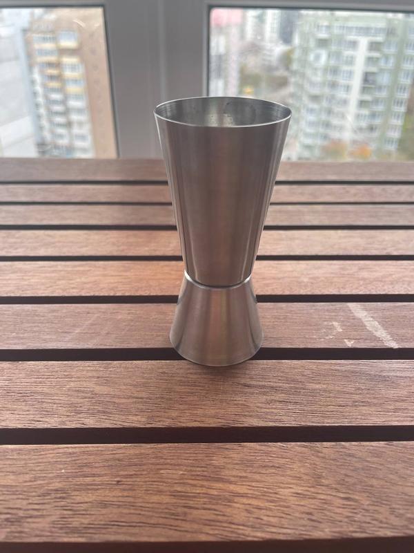 Джиггер (мерный стакан) 30/60 мл Высота (мм): 96 Диаметр (мм): 42/46 Тип емкости: мерный стакан Материал: нержавеющая сталь Объем: 60 мл Джиггер – специальный мерный стаканчик для жидкостей, используется барменами для контроля количества добавляемых в коктейль ингредиентов. Имеет форму песочных часов Существенно ускоряет и облегчает отмеривание маленьких объемов и повышает точность Изготовлен из качественной нержавеющей стали, устойчивой к деформации Предназначен для профессионального применения в ресторанах и барах 100 грн