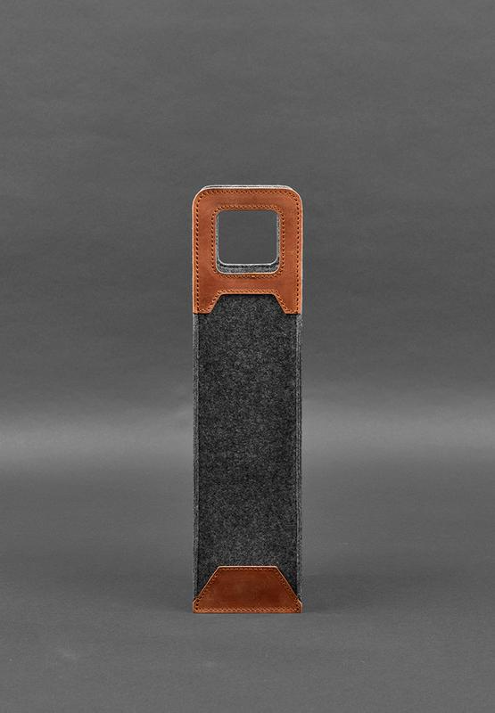 Чохол для вина 1.0 із фетру зі шкіряними вставками світло-коричневий crazy horse