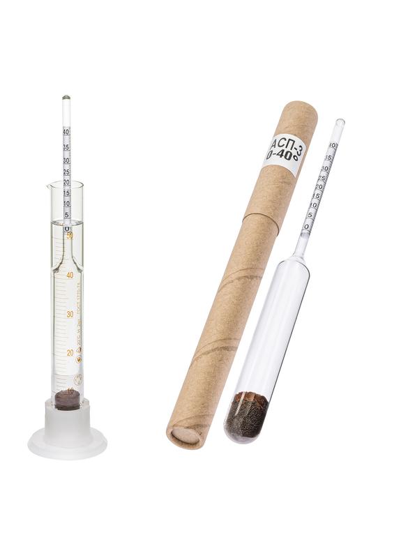 Спиртомер ареометр бытовой АСП-3 максимально точно определяет объемную часть этилового спирта, содержащегося в водном растворе. Данный спиртомер показывает процентное содержание спирта в диапазоне от 0 до 40 %. Для определения процентного содержания спирта поместите сухой и чистый спиртомер в мерный стакан, чтобы он свободно плавал в нем. Считывание показателей спиртомера АСП-3 0-40% производится по шкале ареометра. Ареометр прошел госповерку и соответствуют требованиям ГОСТ 18481—81. Ареометр имет персональный паспорт, клеймо госповерителя и собственный футляр. Ареометры АСП-3 гарантируют высокую точность результата при условии, что измеряемая жидкость находится при температуре 20±2 °С и состоит лишь из двух компонентов – спирта и воды. Если в жидкости присутствуют различные примеси (даже в небольшом количестве, например – сахар), то точность результата снижается. Именно поэтому даже лабораторным ареометром точно измерить концентрацию спирта в браге не получится – в ней содержится слишком много примесей и результат будет с погрешностью. Как и любой другой измерительный прибор украинского производства – ареометры АСП-3 проходят обязательную первичную заводскую поверку и поставляются со свидетельством о прохождении первичной проверки. Китайские модели заводскую проверку не проходят и не имеют соответствующего сертификата. Комплектация: спиртомер, футляр. Технические характеристики: Высота – 260 мм Диаметр – 11 мм Вес – 35 г Материал – стекло, свинец Диапазон измеряемых концентраций спирта: от 0 до 40 % об. Нормированная погрешность не более +0.5 % Цена деления шкалы прибора – 1% об. Рекомендуемый объем цилиндра для погружения ареометра не менее 250 мл Производитель – Украина, Шакриз Преимущества ареометра для спирта АСП-3: Очень точное измерение крепости любого алкогольного напитка. Очень легкий, каждый ареометр комплектуется специальным футляром, который защищает его от механических воздействий. Незаменимый прибор для производстве алкоголя дома, так как позволяет качественно отбирать хвостовые и головные фракции, а также разбавлять готовый продукт до нужной крепости. Очень прост в применении. Для определения просто опустите ареометр в мерный цилиндр с измеряемой жидкостью.