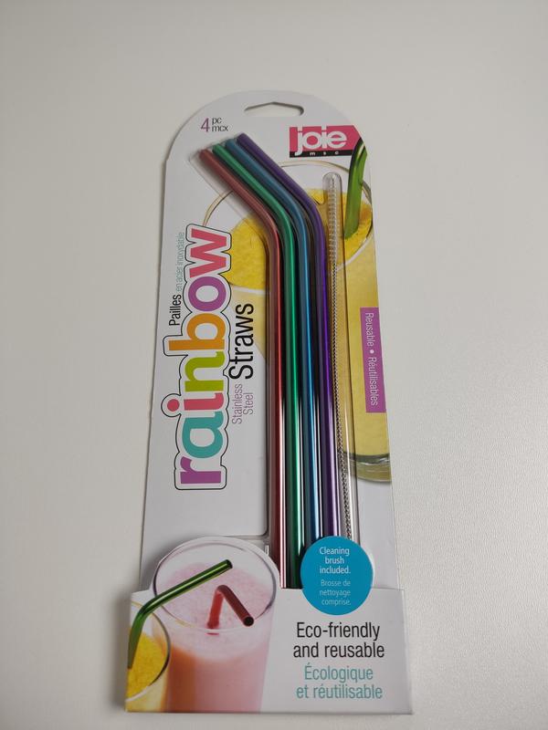 Набор включает четыре многоразовые соломинки из нержавеющей стали разных "радужных" цветов 🌈 В комплект входит щеточка для чистки соломинок. Продукт является многоразовым, что способствует уменьшению использования одноразовых пластиковых соломинок 🏞️ А их яркий и необычный вид украсит любимую вечеринку🍹