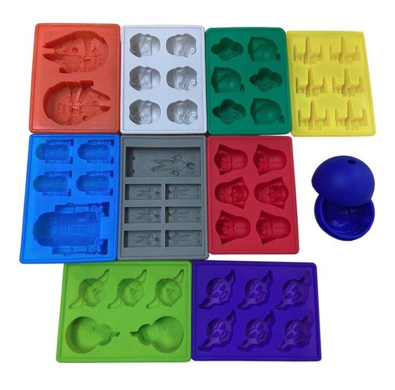 Набор силиконовых форм для льда Star Wars -10 штук в наборе -материал - пищевой силикон 1 x ледяной шар со звездой смерти 1 x лоток для льда Darth Vander 1 х Han Solo лоток для льда 1 x R2-D2 лоток для льда 1 x лоток для льда штурмовика 1 x-wing Fighter льда лоток 1 x Бобба Фетт льда лоток 1 x лоток для льда Millennium Falcon 1 x лоток для льда Мастер Йода 1 x лоток для льда Йода/BB8