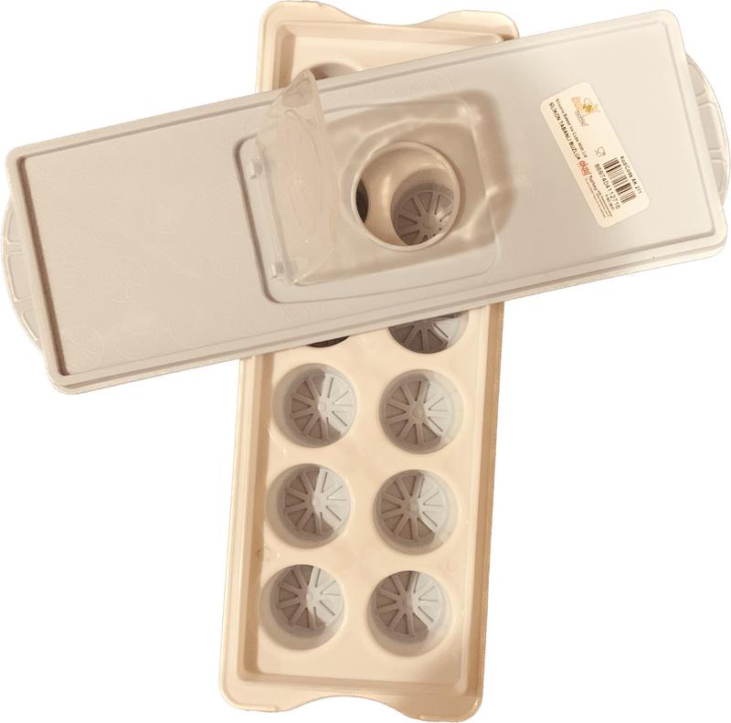 Форма для льда освежит ваши коктейли в жаркую погоду. Для отливки формы вам нужно всего лишь залить формочки очищенной негазированной водой и после этого поставить форму в холодильник или морозильную камеру. Форма с герметично крышкой, вы можете не бояться что случайно вода прольется. Крышка формы оснащена клапаном через который удобно заполнять форму водой не снимая крышки. Изготовлена из качественного и безопасного пластика, низ формочки из пищевого силикона. На 12 кусочков льда. Размеры: форма 26х9,5см, размер кусочка диаметром 3см, высотой 1,5см.