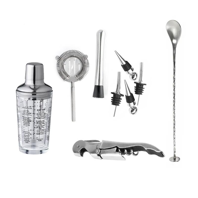 Набор для бара Youchen MC-X14-1 Набор Youchen MC-X14-1 - функциональный комплект, который станет идеальным помощником для тех, кто любит создавать изысканные коктейли дома или в профессиональном баре. Youchen MC-X14-1 подходит как для профессиональных барменов, так и для любителей, желающих удивить своих гостей изысканными коктейлями. Особенности: Набор включает в себя 9 необходимых предметов, изготовленных из качественной нержавеющей стали, что обеспечивает долговечность и стильный вид благодаря сочетанию матовой и зеркальной полировки. Предназначен для тех, кто ценит качество и функциональность каждой детали. Шейкер позволяет эффективно смешивать ингредиенты, создавая идеальные коктейли с однородной консистенцией. Спиральная ложка станет незаменимым инструментом для тщательного смешивания и создания слоеных коктейлей. Мадлер поможет раскрыть аромат и вкус свежих фруктов и трав, добавляя к вашему напитку неповторимую свежесть. Стрейнер играет роль сита, обеспечивая чистоту коктейля и отделяя большие частицы, такие как лед или мякоть фруктов. Два гейзера обеспечивают точный и равномерный разлив алкоголя, что особенно важно для достижения идеальных пропорций в ваших напитках. Пробки помогут сохранить свежесть и аромат открытых бутылок, а открывалка пригодится для удобного открывания бутылок с напитками. Идеально подходит для использования дома, на вечеринках или в баре, добавляя нотку профессионализма к любому мероприятию.