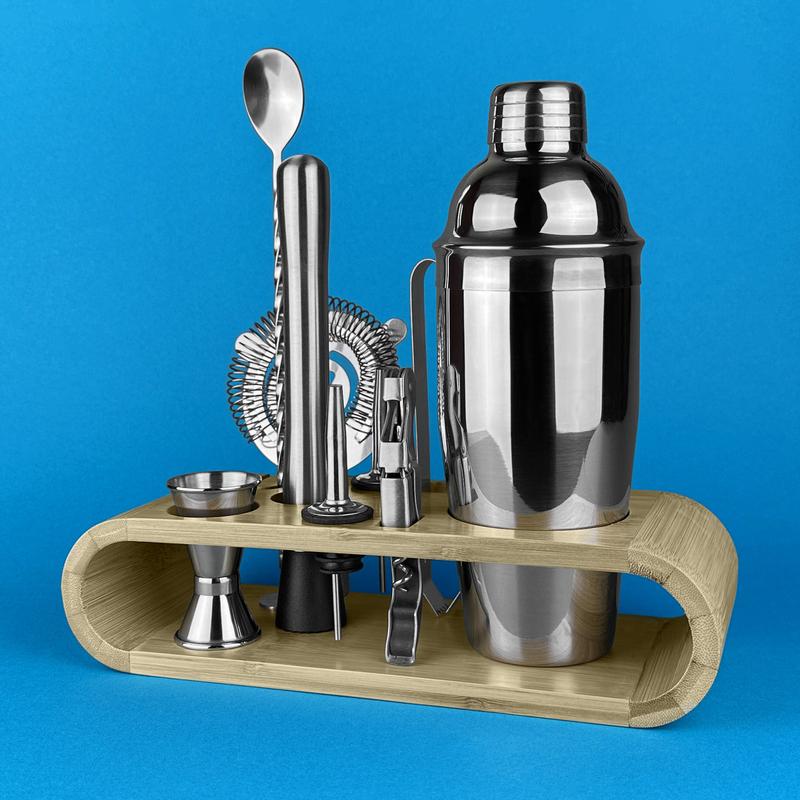 Важным атрибутом веселых зажигательных вечеринок являются вкусные коктейли. Для приготовления напитков в домашних условиях, на коктейльных вечеринках или в ночных клубах рекомендуем приобрести барменский набор для смешивания ингредиентов. В набор входят все необходимые аксессуары для взбалтывания, охлаждения и разлития различных напитков (шотов, лонгов, смузи) по стаканам. Универсальный комплект для смешивания коктейлей состоит из таких компонентов: - Шейкер 750мл - Стрейнер - Щипцы для льда - Откривалка - Барная ложка - Джигер 15/30 - Мадлер - Гейзер: 2 шт - Деревянный держатель