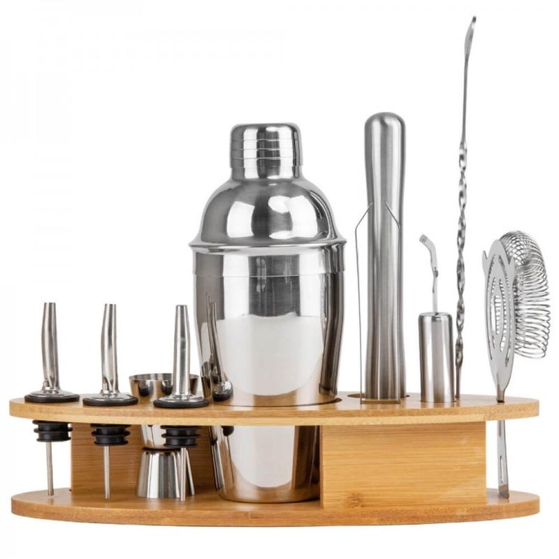 Барный подарочный набор для изготовления коктейлей - это стильный и практичный комплект с бамбуковой подставкой, помогающий создать идеальные коктейли дома. Набор состоит из предметов, которые приготовят коктейли легким и веселым процессом. В частности, в комплекте есть шейкер объемом 500 мл и высотой 21 см, двойной джигер, 3 гейзера, щипцы для льда, мадлер, барная ложка, открывашка, стрейнер или барное ситечко. Этот набор позволяет не только эффективно смешивать и охлаждать ингредиенты, но и дает атмосферу профессионального бара в собственном доме. Барный набор является идеальным подарком для любого коктейльного любителя, независимо от уровня опыта