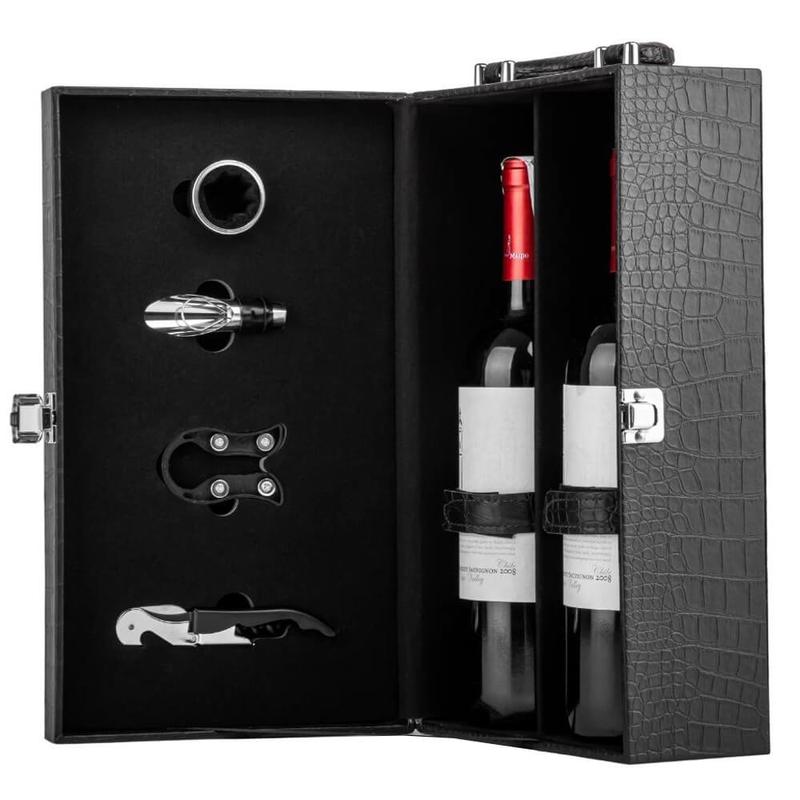Набор подарочный для вина на 2 бутылки 35х11х12 см 19021-003 материал - экокожа Кейс для вина - это элегантный и стильный комплект в подарочной коробке из эко-кожи, состоящий из высококачественных винных аксессуаров: штопора, бутылки, кольца для шейки и устройства для аккуратного разлива вина. Кейс изготовлен из эко-кожи. Внутри есть отдел для вина и ремни, чтобы сохранить бутылку вина в безопасности. Кейс для вина - отличный подарок мужчине на День Рождения, семье на Новоселье, руководителю на Юбилей и тем, кто ценит изысканный вкус и атмосферу вечера в компании друзей, коллег или семьи.
