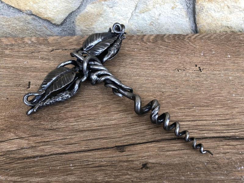 Собственноручно кованый штопор в виде листьев и маленьких веток