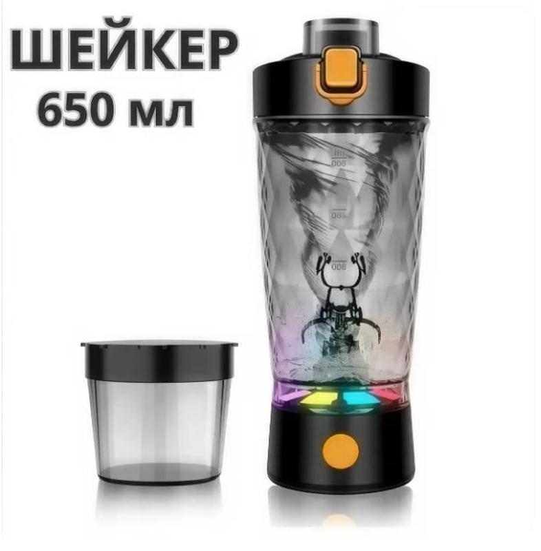 Электрический шейкер 650 мл с led подсветкой и контейнером для смеси, черный