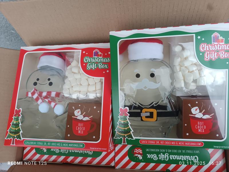 Рождественский подарочный набор Christmas gift box для приготовления горячего шоколада с маршмеллоу (Снеговик ⛄, Санта 🎅) 45 г В набор входит: милый стеклянный Снеговик или Санта (16 см высотой и 10 см шириной) с откручивающейся крышкой и укомплектован тканевой шапкой Санты и шарфом, идеально подходит для праздников. Вы также найдете пакетик миниатюрного мягкого маршмеллоу (25 г) и коробочку с смесью для горячего шоколада со вкусом ванили (20 г).
