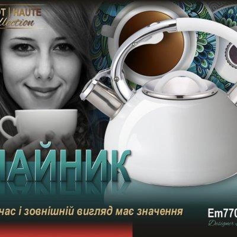 Чайник со свистком белый с комбинированной ручкой v 3 л (шт) em-7709, белый