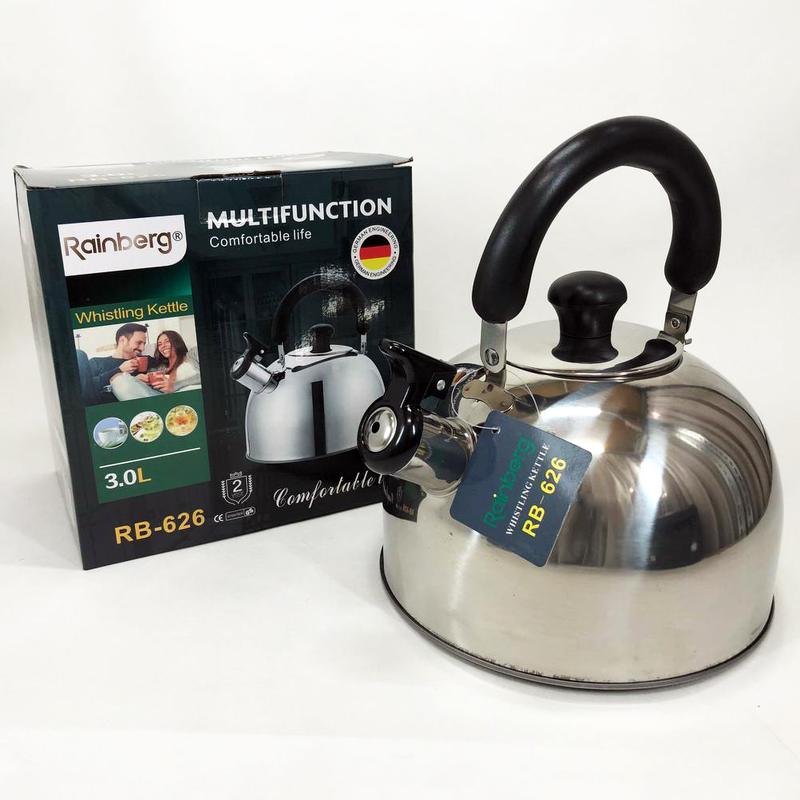 Чайник зі свистком, з нержавіючої сталі для електричних та газових плит Rainberg RB-626 3л
