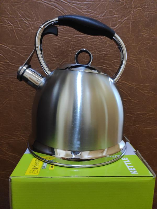 Объем 3 л Утолщенное дно, подходит для всех типов плит, включая индукцию. Свисток откидывается кнопкой на ручке