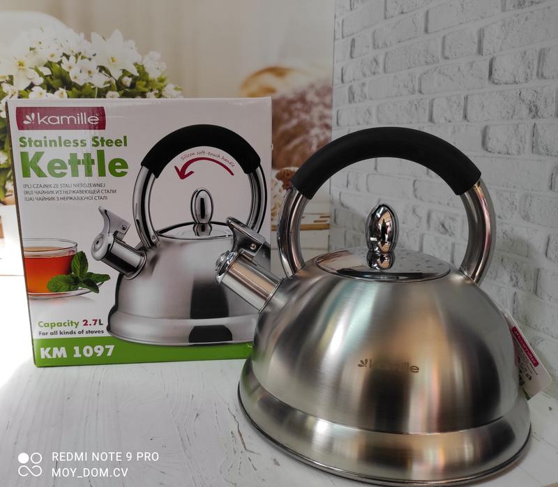 Чайник зі свистом Kamille KM-1097 Чайник зі свистом Kamille KM-1097 - Це чайник для плити, виготовлений з високої нержавіючої сталі. Стальні вироби дуже міцні й довговічні, мають високі гігієнічні та антикорозійні властивості і не вимагають особливого догляду та легко моться. Оприлюднено не нагріваючою ручкою. Завдяки свистку Ви точно знатимете момент закипання води. Характеристики: Тип: чайник зі свистком Матеріал: нержавілий сталь Матеріал ручки: нержавіюча сталь Об'єм: 2.7 л Форма: кругла Підходить для всіх типів плит Колір: срібний Виробник: Kamille