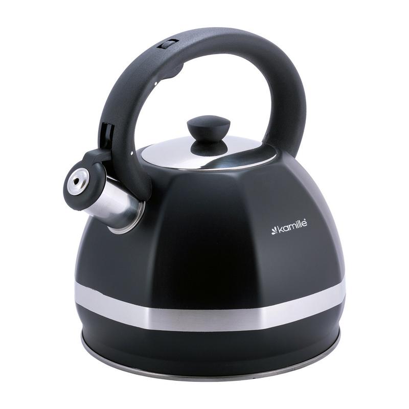 Чайник со свистком Kamille KM-1078 Чайник со свистком Kamille KM-1078 изготовлен из высококачественной нержавеющей стали, что способствует быстрому и равномерному нагреванию и распределению тепла. Характеристики: - Тип: чайник - Вид: со свистком - Материал корпуса: нержавеющая сталь - Материал крышки: нержавеющая сталь - Материал ручки: нейлон - Объем: 3 л - Подходит для всех типов плит - Цвет: черный - Производитель: Kamillе