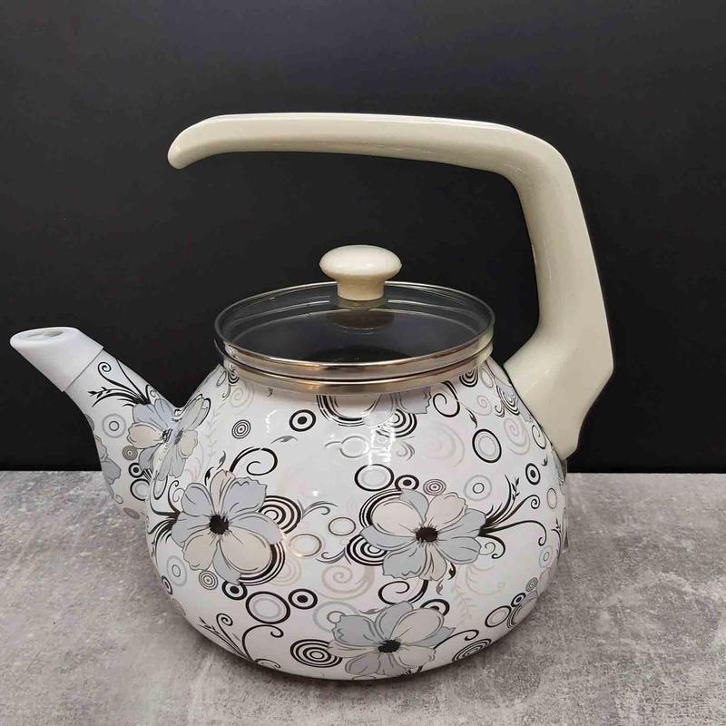 Чайник эмалированный без свистка 2,2 л кружево interos 1279